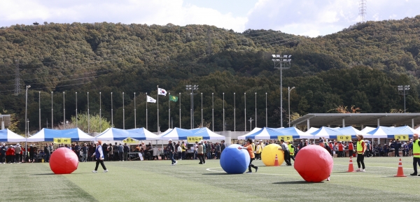 노인운동회는 각 면·동 어르신 선수단 22팀의 입장을 시작으로 한궁, 훌라후프 돌리기, 바구니에 모래주머니 넣기 등 6개 종목 경기가 펼쳐지며 운동장에 응원과 함성소리가 크게 울려 퍼졌다.