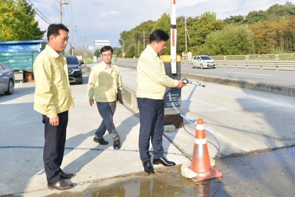 최재구 예산군수는 지난 23일 오후 거점소독시설을 긴급 점검하고 관계자를 격려하는 한편 선제 대응에 총력을 기울여 줄 것을 당부했다.