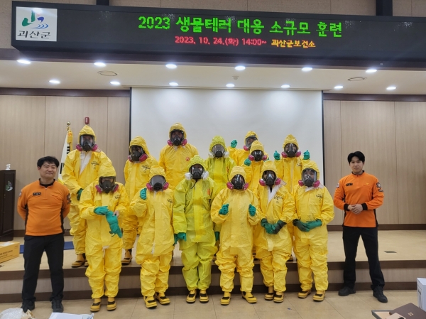 [충청뉴스큐] 충북 괴산군보건소는 24일 괴산소방서와 합동해 ‘생물테러 대응 소규모 모의훈련’을 실시했다.