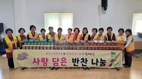 이날 회원들은 제육볶음, 무생채, 콩나물무침 등 가을철 건강을 위한 반찬을 직접 조리했으며 화양면 자원봉사자들과 함께 어르신 가정을 방문해 직접 반찬을 전달하고 안부를 확인했다.