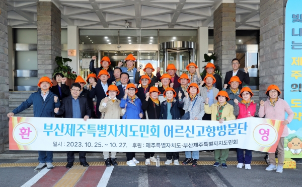 [충청뉴스큐] 김희현 제주특별자치도 정무부지사는 25일 제주도청 백록홀에서 열린 부산제주도민회 어르신 고향방문단 환영 행사에 참석해 그동안 고향사랑 실천에 대한 감사 인사를 전하고 관계자들을 격려했다.