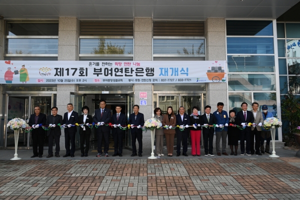 부여연탄은행은 2007년 12월에 개원해 2022년 3월까지 부여군 16개 읍면 지역에 도움이 필요한 기초수급대상자, 독거 어르신, 차상위계층 등 2,152가정에 879,252장의 연탄 나눔을 실천하는 등 겨울철 추위로 힘든 시간을 보내야 하는 이웃에게 힘이 되고 있다.