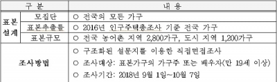 조사 요원이 직접 방문해 가구주나 배우자에게 설문지를 제공하는 면접 조사 방식으로 진행하며, 결과는 오는 2019년 3월 발표 예정이다.