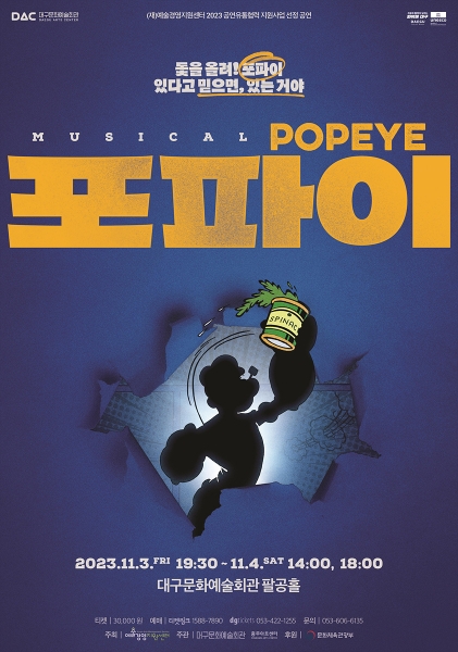 대구문화예술회관 초청공연으로 진행되는 뮤지컬 ‘포파이’는 서울 중구문화재단 충무아트센터가 주관해 2021년부터 약 2년간의 작품 개발 과정과 쇼케이스를 거친 뒤 마침내 올해 여수, 대구에서 초연된다.