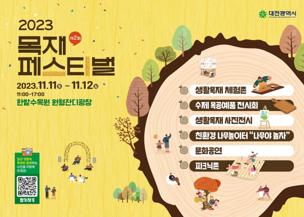 [충청뉴스큐] 대전시는 11월 11일부터 12일까지 이틀간 한밭수목원 원형 잔디광장에서 ‘제2회 목재 페스티벌’을 개최한다.