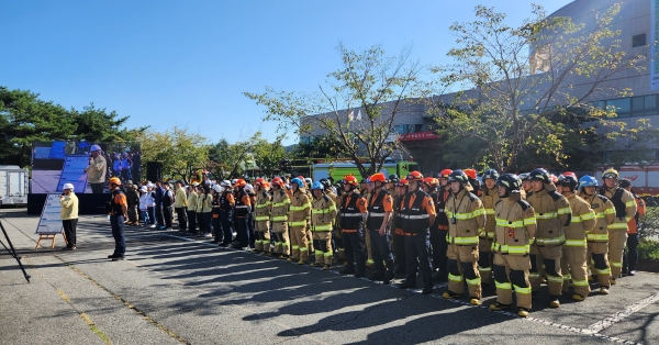 시는 지난 9월 7일 계룡소방서 논산경찰서 제3585부대 4대대, 한국전력공사, CNCITY에너지등 17개 유관기관 250여명과 함께 지진으로 인한 두마면 대전우편집중국 붕괴 및 화재 등 복합재난 상황을 가정해 훈련을 수행했다.