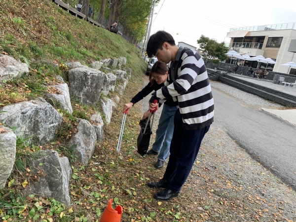 이번 활동은 29명의 ‘청심’ 회원들이 곡교천 은행나무길을 따라 담배꽁초 등 버려진 쓰레기를 주우면서 진행됐다.