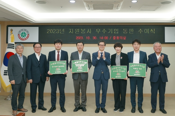 [충청뉴스큐] 대전시는 30일 시청 중회의실에서 자원봉사활동 우수기업 4개 사에 2023년도 자원봉사 우수기업 동판을 수여했다.