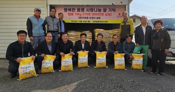 한편 기탁받은 쌀은 부여읍행정복지센터에서 어려운 이웃 270가구를 선정해 이장님들과 함께 각 가정에 전달했다.