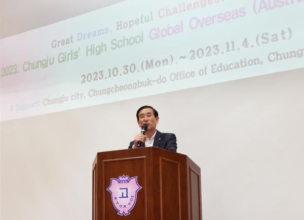 조길형 충주시장은 지난 10월 30일 충주여고를 방문해 호주로 연수를 떠나는 학생과 교직원에게 “충주의 미래를 책임질 학생들이 많은 것을 보고 느끼는 경험이 되길 바란다”며 “특히 매달 용돈을 모아 연수 경비를 마련한 충주여고 학생들의 멋진 행동에 칭찬과 격려를 전하며 다들 안전하게 다녀오길 바란다”고 말했다.
