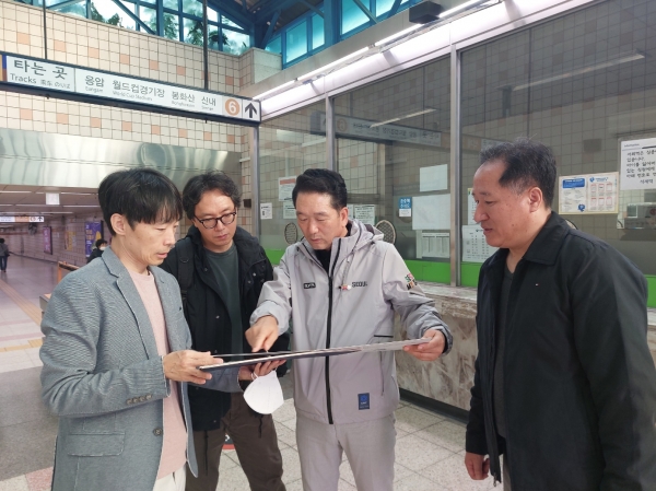 [충청뉴스큐] 서울시의회 주택공간위원회 김태수 부위원장은 10월 31일 석계역 5번 출입구 현장을 방문해 서울교통공사에 에스컬레이터의 조속한 설치를 주문했다.