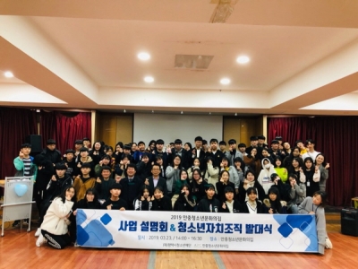 [83-20190325103013.jpg][충청뉴스큐] 평택시청소년재단 안중청소년문화의집은 지난 23일 오후 2시부터 청소년자치조직 단원 70여명이 참석한 가운데 2019년도 안중청소년문화의집 사업설명회 및 청소년자치조직 발대식을 성료했다.