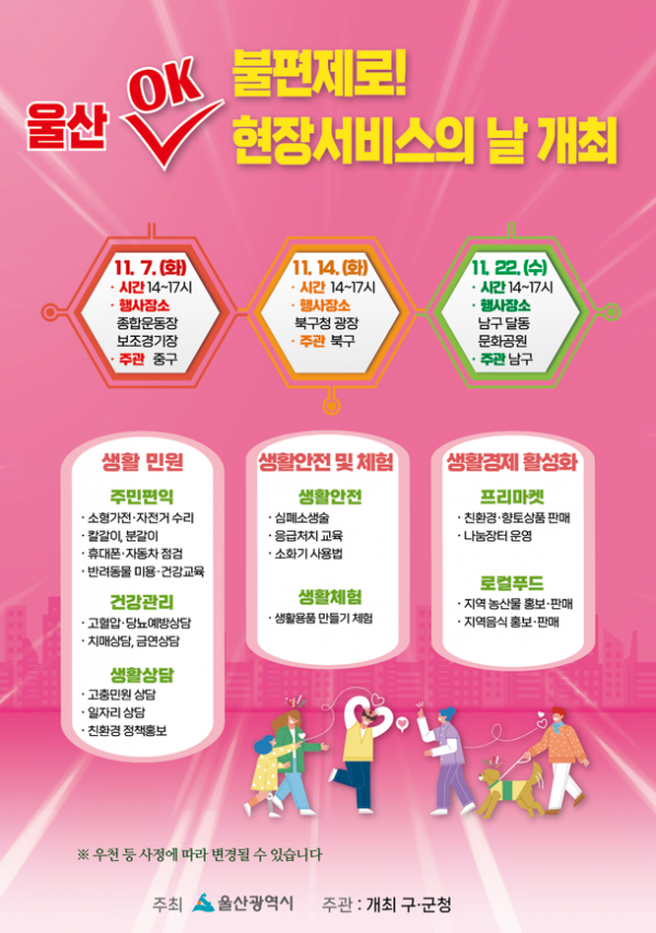 [충청뉴스큐] 울산시가 지역 주민의 생활 편의를 위해 ‘불편제로 울산 오케이현장서비스의 날’을 개최한다.