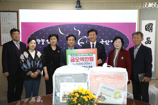 [충청뉴스큐] 서울시 송파문화원 정병구 원장은 지난 11월 1일 고향 금산의 발전을 위해 고향사랑기부제 기부금 500만원을 기탁했다.