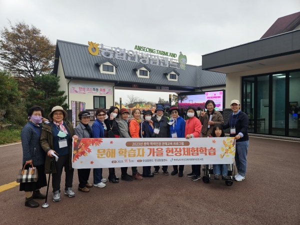 [충청뉴스큐] 충청남도아산교육지원청아산도서관은 11월 1일 중학학력인정 문해교육 프로그램 2, 3단계 학습자 14명과 경기도 안성으로 가을 현장체험학습을 다녀왔다.
