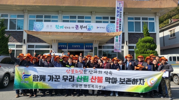 [충청뉴스큐] 규암면은 가을철 산불조심기간이 도래됨에 따라 이장단협의회, 면사무소 직원 등 50여명이 참여한 가운데 2023년 가을철 산불방지를 위한 결의대회를 개최했다.