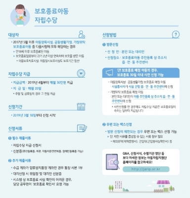 아동양육시설·공동생활가정 보호종료 예정 아동은 시설 종사자가 시설 소재지 관할 동주민센터에서 신청하면 된다.