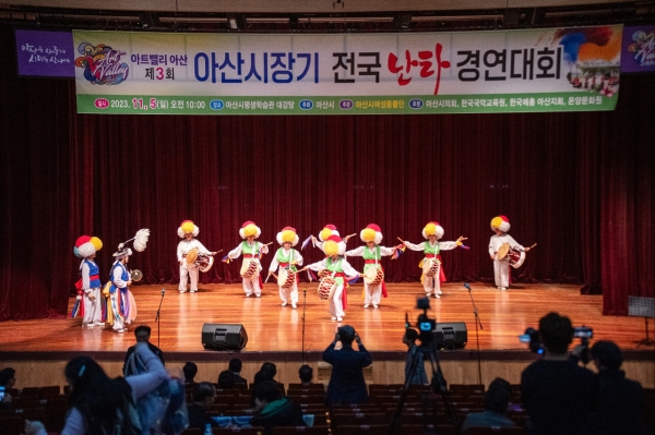 [충청뉴스큐] 아산시가 주최하고 아산시여성풍물단에서 주관한 ‘아트밸리 아산 제3회 아산시장기 전국 난타 경연대회’가 지난 5일 평생학습관 대강당에서 성황리에 마무리됐다.