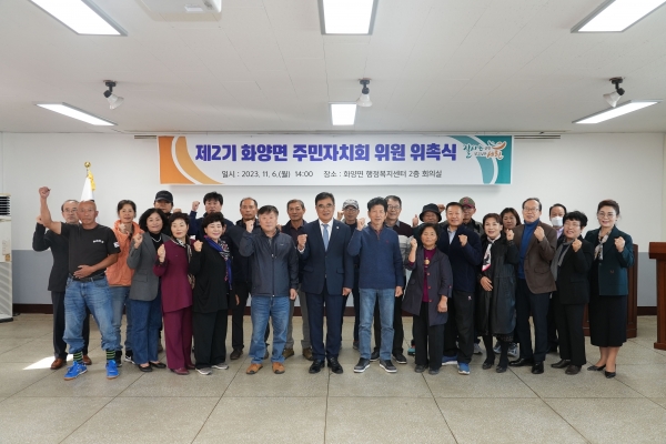 제2기 화양면 주민자치회장으로 조호연 씨가 선출됐으며 위원들은 앞으로 2년의 임기 동안 지역주민을 대표해 마을계획 수립, 주민총회 개최 등의 활동을 통해 주민의 삶과 직결되는 다양한 사업을 추진할 계획이다.