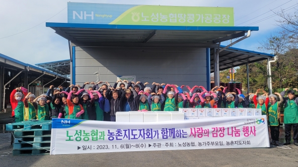 이날 김장 행사에는 노성면 농촌지도자회, 농가 주부 모임 회원들과 노성농협 직원 100여명이 참여했다.