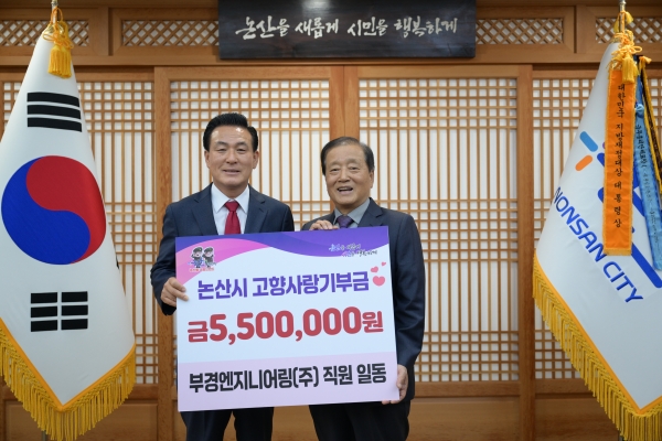 [충청뉴스큐] 부경엔지니어링㈜ 직원들이 논산시로 ‘고향사랑기부금’ 550만원을 기증했다.