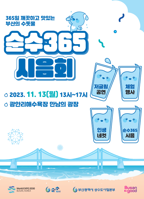 이날 행사에서는 부산의 수돗물 '순수365'를 직접 음용해볼 수 있다.