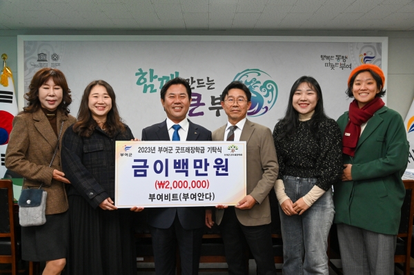 이에 박정현 부여군수는 “지역에 활력을 불어넣는 이러한 시도들이 지역에서 자라나는 학생들에게 선한 영향력이 돼 지역에 정착할 수 있는 계기가 되길 바란다”며 “기탁해 주신 정성은 우수한 인재를 지원하는 장학사업에 소중히 사용해 ‘부여안다’에서 더 많은 청년들이 활동할 수 있도록 노력하겠다”고 화답했다.