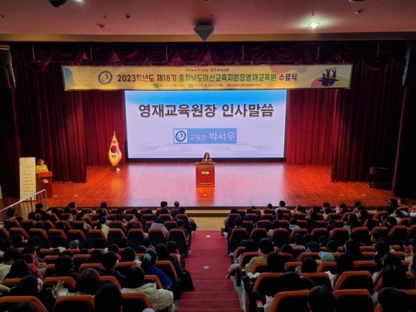 [충청뉴스큐] 충청남도아산교육지원청은 지난 11일 아산시청 시민홀에서 영재교육원 수료 학생 169명, 지도교사 48명, 학부모와 내빈 300여명이 참석한 가운데 2023학년도 아산교육지원청영재교육원 수료식을 실시했다.