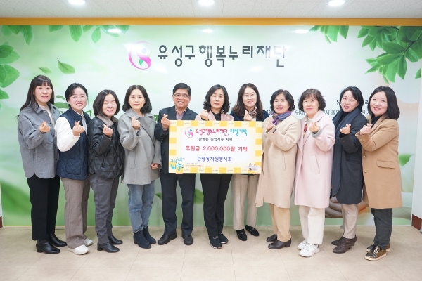 [충청뉴스큐] 유성구 관평동 자원봉사회는 지난 13일 유성구행복누리재단을 방문해 복지사각지대 놓인 관내 저소득 가구 및 불우한 학생을 위한 후원금 2백만원을 전달했다.