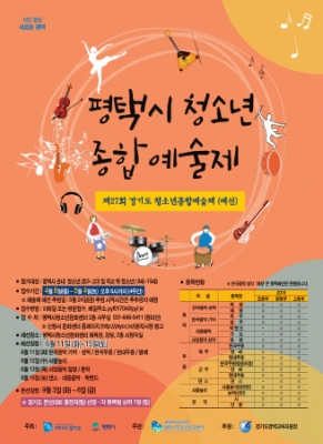 평택시청소년종합예술제는 제 27회 경기도청소년종합예술제의 예선 역할로써 각 종목별 최우수팀은 9월 경기도청소년종합예술제 본선에 참여 할 수 있는 출전권이 주어진다.