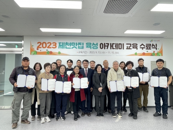 [충청뉴스큐] 2023년도 제천맛집 육성 아카데미 수료식이 15일 제천어번케어센터에서 열렸다.