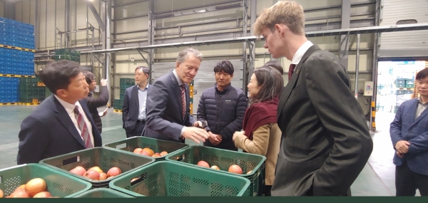 프레드릭 보스나르 네덜란드 특사는 사과 선별과정에서 발생한 비정형과를 알뜰사과로 상품화해 판매하는 저탄소 마케팅에 큰 관심을 표했다.