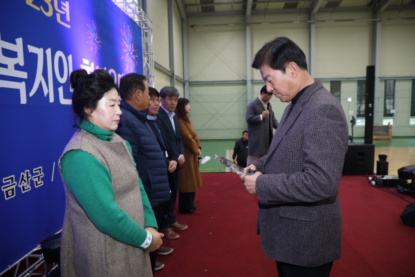 이날 사회복지 발전 유공으로 금산읍지역사회보장협의체 정은순 위원 등 9명 진산면지역사회보장협의체 김성일 위원 등 2명 금산군정신보건센터 박지은 통합서비스분과위원 등 2명이 표창을 받았다.