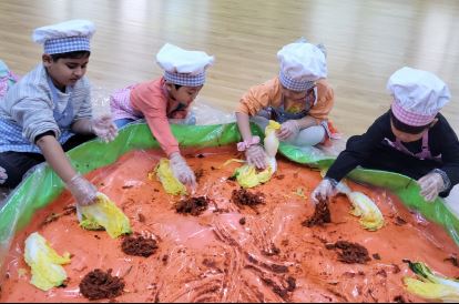 [충청뉴스큐] 아산흰돌유치원은 11월 16일 유치원 어울림터에서 우리나라 전통 음식 김장하기 체험을 실시했다.