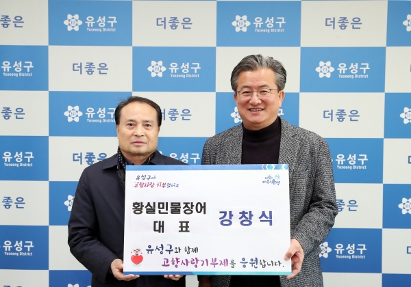 [충청뉴스큐] 대전 유성구는 21일 구즉동에 위치한 황실민물장어이 고향사랑e음을 통해 유성구 고향사랑기부제 고액 기부자로 동참했다고 전했다.