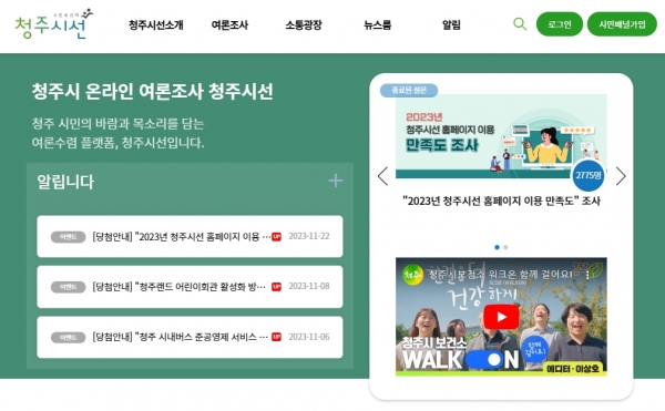 한편 이번 만족도 조사결과는 청주시선 홈페이지에서 확인할 수 있다.