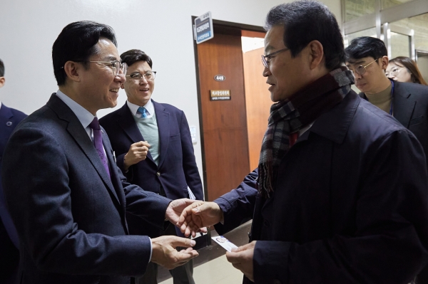 박경귀 시장은 행안위 전체회의에 앞서 회의장을 찾아, 위원들에게 일일이 인사하며 경찰복지법 개정안에 대한 중요성과 지역의 염원을 전달했다.