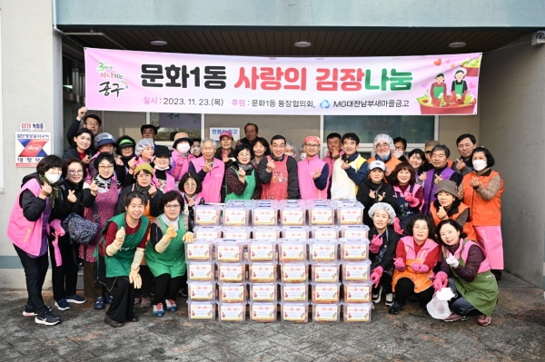 [충청뉴스큐] 대전 중구 문화1동은 23일 통장협의회 주관으로‘2023 사랑의 김장나눔 행사’를 진행했다고 밝혔다.