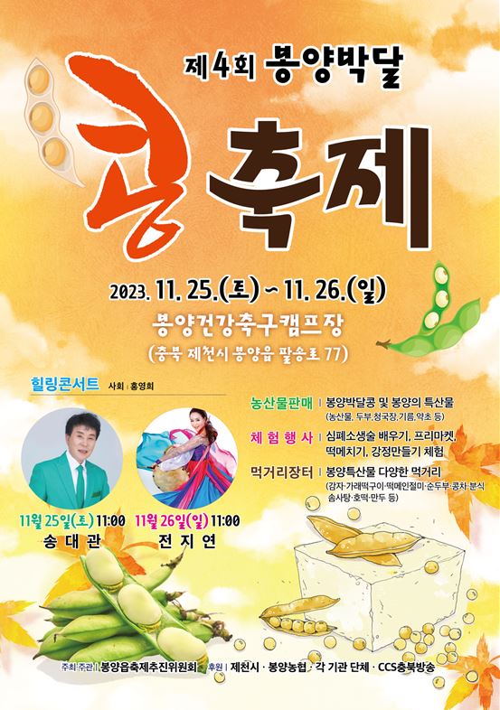 [충청뉴스큐] 제천시는 오는 25일부터 26일까지 봉양읍 팔송리 일원 주 무대인 건강축구캠프장에서 제4회 봉양박달콩축제를 개최한다고 밝혔다.