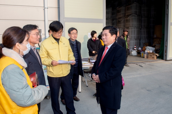 [충청뉴스큐] 김창규 제천시장이 지난 23일 봉양 창고에서 진행된 공공비축미곡 매입 현장에 방문, 출하 농가 및 매입 관계자들을 격려했다.