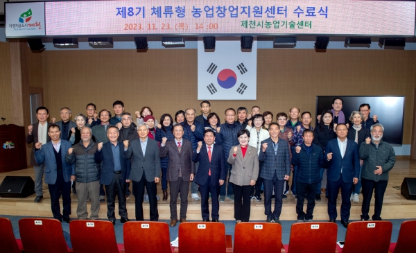 [충청뉴스큐] 제천시농업기술센터는 지난 23일 제천시 농업기술센터내 농업인 교육장에서 2023년 제8기 체류형 농업창업치원센터 수료식을 개최했다.