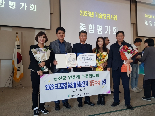 [충청뉴스큐] 금산군잎들깨수출협의회는 지난 23일 전북도 무주군 나봄리조트에서 열린 농촌진흥청 주관 2023년 최고품질 농산물 생산단지 경진대회에서 최우수상을 받았다.