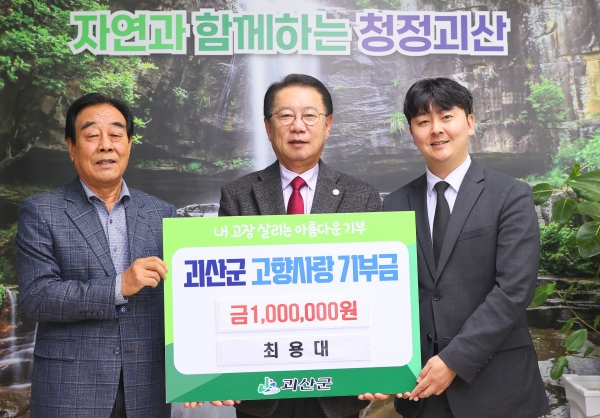 최용배 씨는 “나의 고향이자 아들이 세무사로 활동하고 있는 괴산군을 사랑하는 마음으로 고향사랑기부를 하게 됐다”며 “내년에도 출향인사들의 꾸준한 기부행렬이 이어져 지역경제 활성화에 큰 도움이 되길 바란다”고 전했다.