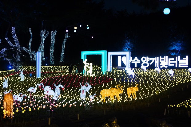 수양개빛터널 내부의 ‘한국판 라스베이거스 쇼’를 떠올리게 하는 화려한 공연이 펼쳐지고, 외부는 비밀의 정원을 비롯해 전시관, 휴게시설 등 다양한 시설로 구성됐다.