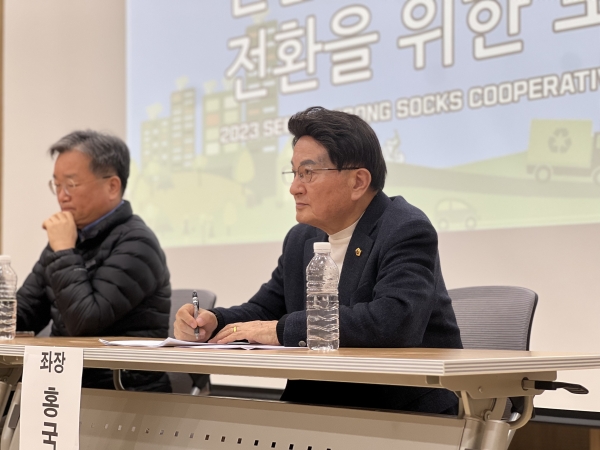 [충청뉴스큐] 서울시의회 홍국표 의원은 11월 24일 도봉구 창동아우르네 대강당에서 서울도봉양말협동조합과 ㈜태환강직 주관으로 개최된 ‘친환경 양말산업 전환을 위한 포럼’에 좌장으로 참석했다.