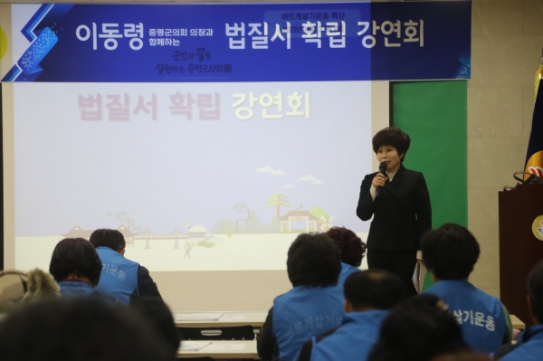 [충청뉴스큐] 이동령 증평군의회 의장이 지난 27일 증평군새마을회관 회의실에서 바르게살기운동증평군협의회 회원들을 대상으로 법질서 확립 특강을 실시했다.
