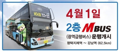 [충청뉴스큐] 평택시는 평택 지제역~강남역 노선에 전국 최초로 2층 M버스를 오는 4월 1일부터 운행한다고 밝혔다.