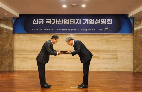 [충청뉴스큐] 대전시는 신규 국가산업단지 신속 조성 추진에 기여한 공로를 인정받아 28일 신규 국가산업단지 기업설명회에서 국토교통부 장관 기관 표창을 받았다.