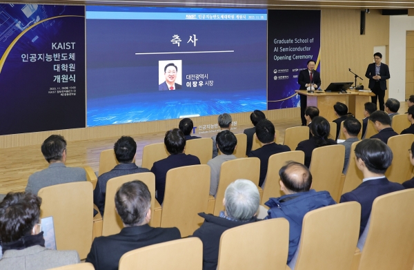 한국과학기술원에서 열린 이날 행사에는 이장우 대전시장과 이광형 한국과학기술원 총장, 강도현 과기정통부 정보통신정책실장, 전성배 정보통신기획평가원장 등을 비롯해 한국과학기술원 교직원 및 반도체기업 관계자 등이 참석해 현판식을 갖고 인공지능반도체대학원의 개원을 축하했다.
