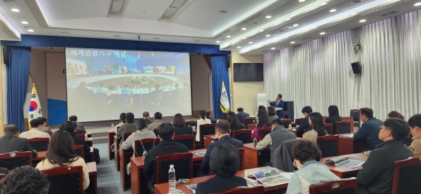 29일 오전 10시 30분 제주도청 본관 4층 탐라홀에서 열린 특강에서 세계관광기구 아시아태평양지역 황해국 국장이 강사로 나섰다.